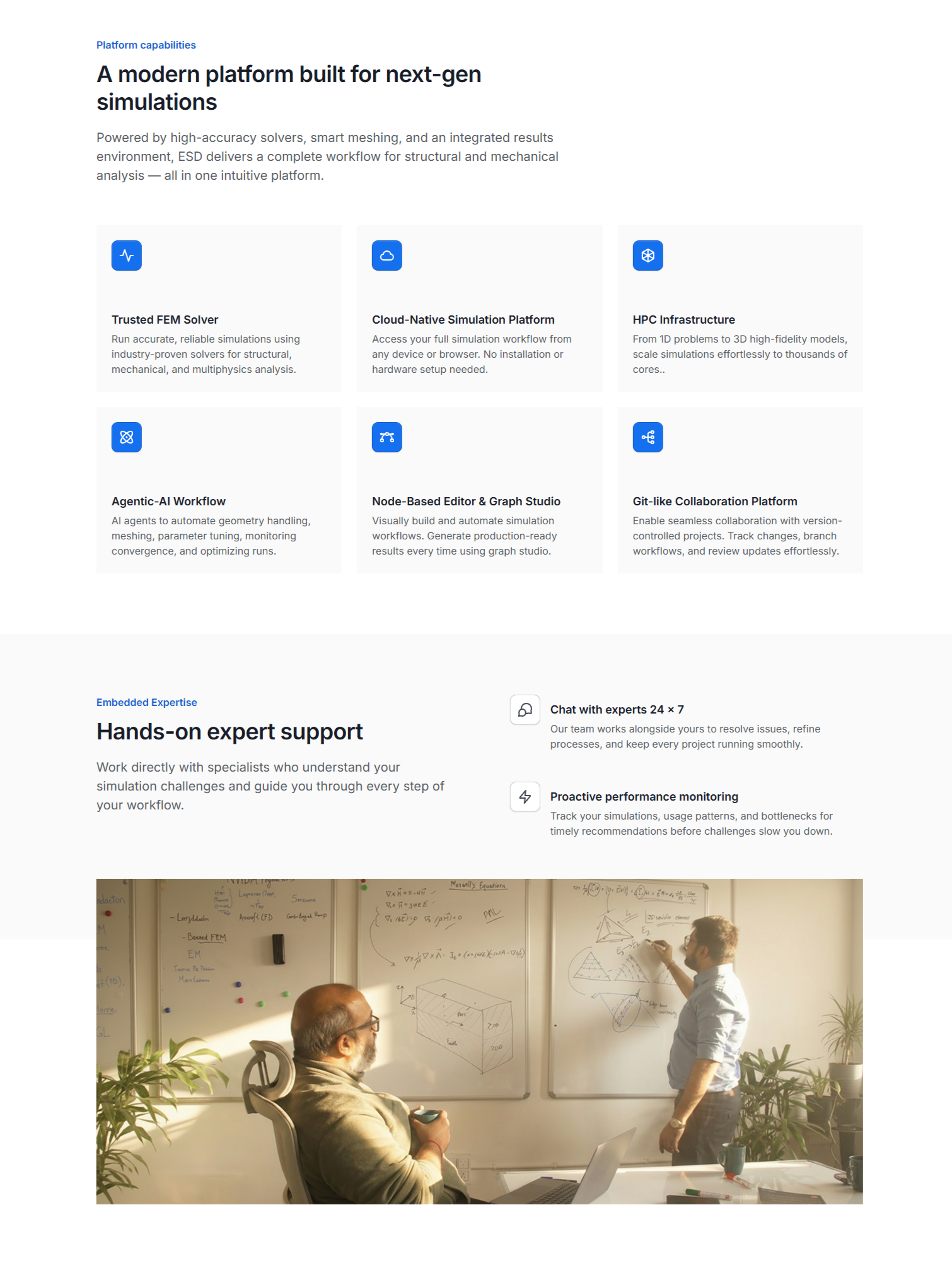 We designed and developed the digital platform for Eigen Space Design, a next-generation simulation environment that combines AI, scientific machine learning, and modern cloud infrastructure. The platform focuses on enabling engineers and researchers to explore complex systems through interactive simulation workflows and high-performance computational tools.